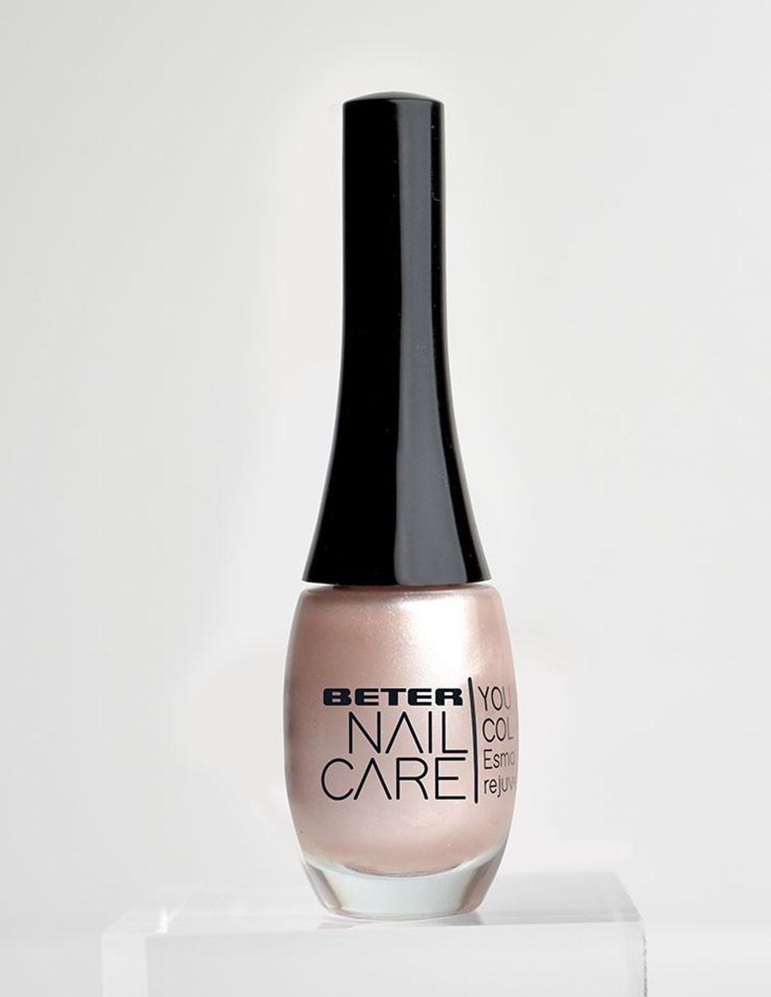 BETER Esmalte Youth Color es un esmalte de uñas vegano que combina color y tratamiento en un solo producto. Su fórmula, enriquecida con el complejo Pro-Age (Vitamina C, ácido hialurónico y plancton foto reactivo) y filtro UV, fortalece, suaviza y protege las uñas del envejecimiento, proporcionando un brillo extraordinario y una alta cobertura de larga duración.