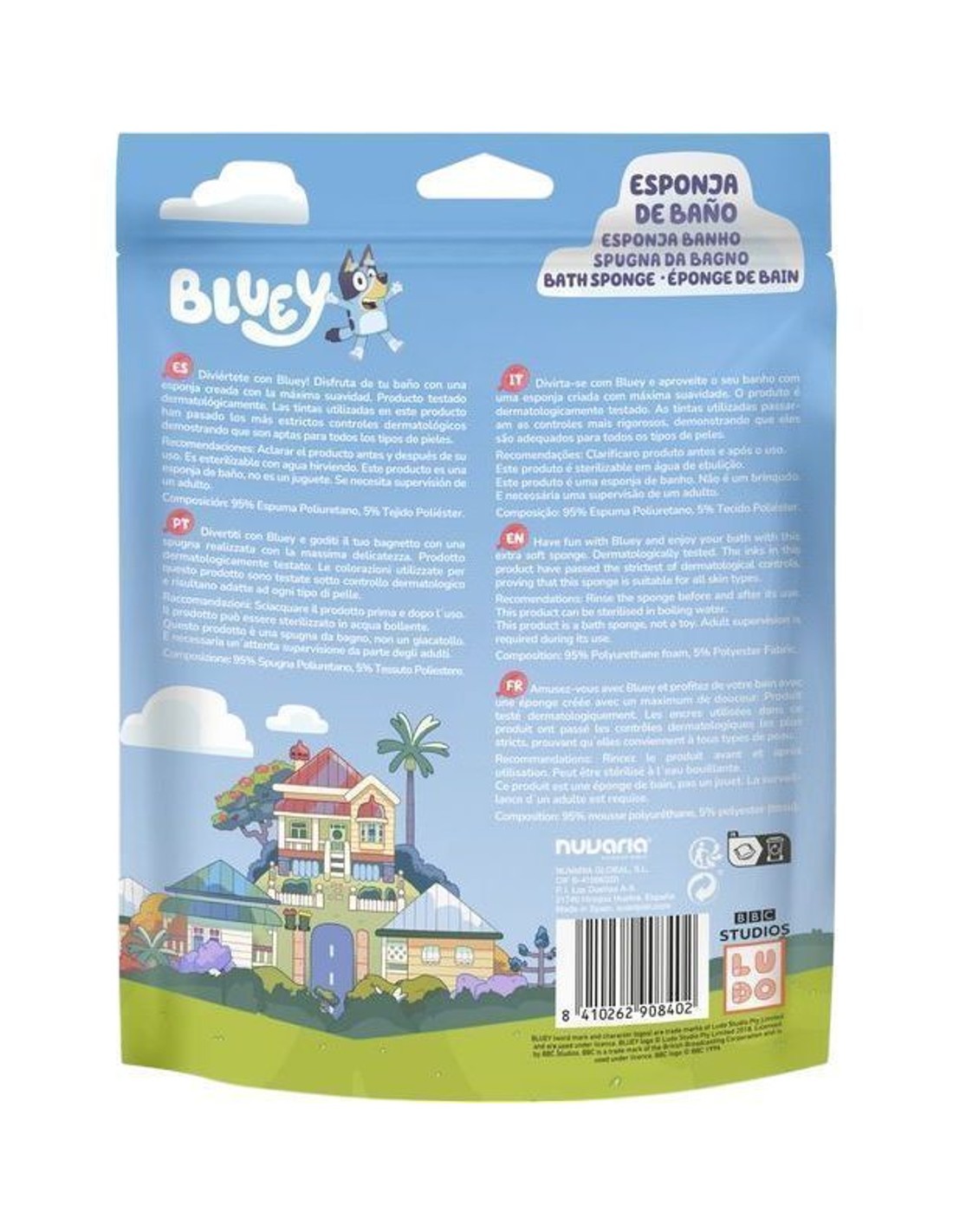 Haz del baño un momento de juego y diversión con la Esponja Baño Infantil Bluey. Especialmente diseñada para los más pequeños, esta esponja suave y colorida presenta a los personajes de Bluey, la popular serie de televisión, convirtiendo la hora del baño en una aventura emocionante. Su textura delicada es perfecta para la piel sensible de los niños, creando una espuma abundante con solo una pequeña cantidad de gel.