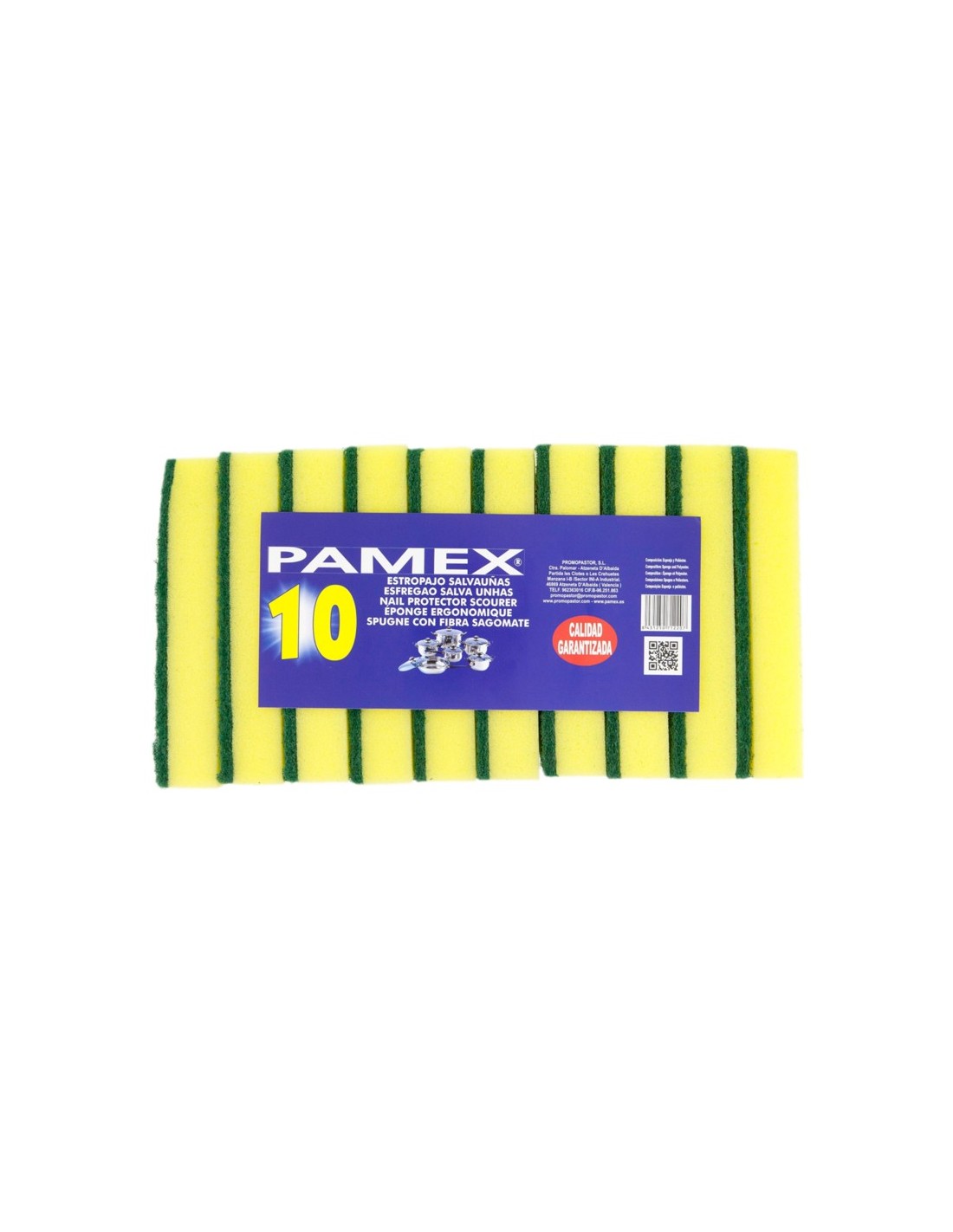 ESTROPAJO FIBRA VERDE CON ESPONJA (14x10x2,5) 10 UDS. PAMEX