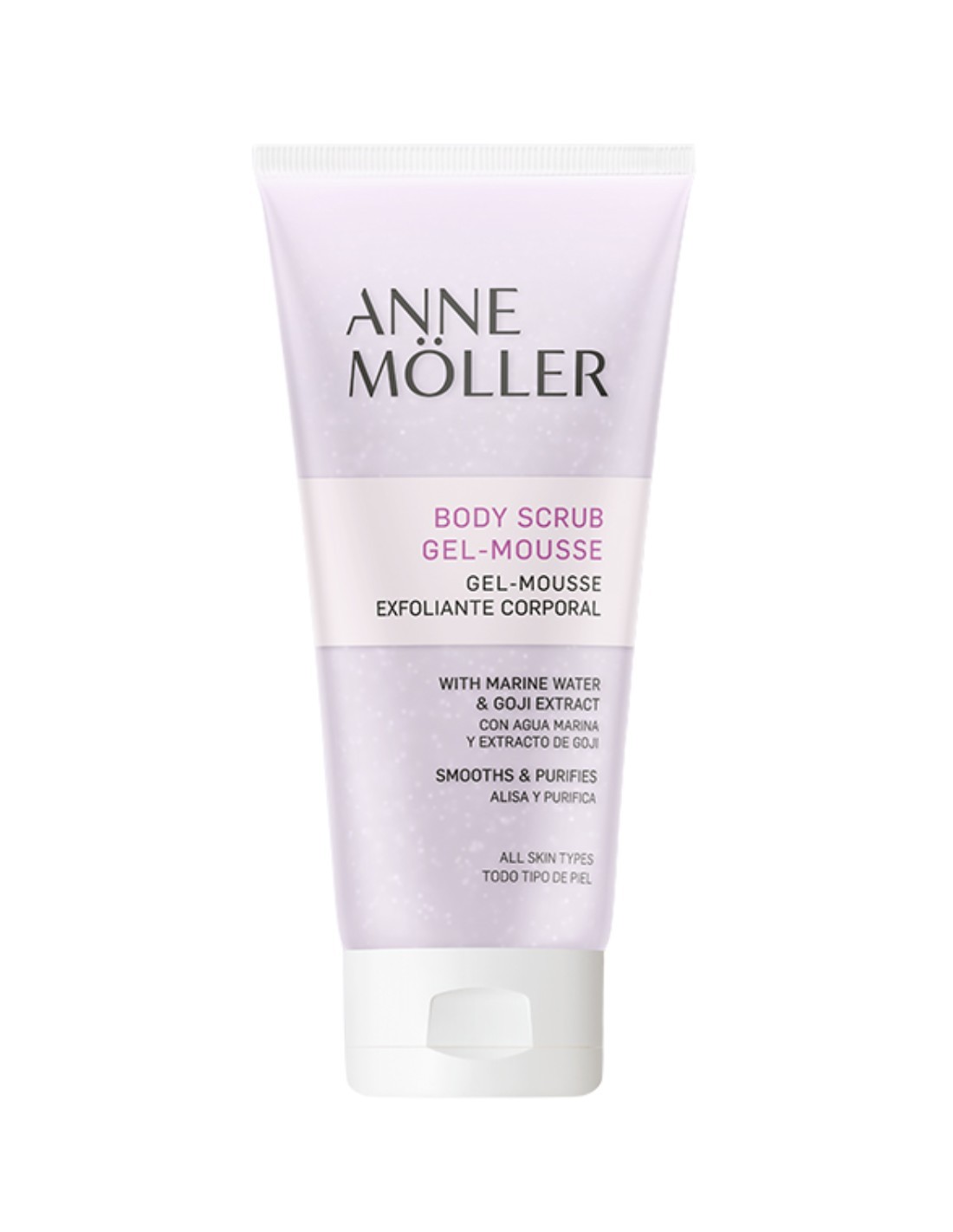 El exfoliante corporal Anne Möller Gel-Mousse combina eficacia y suavidad en un solo gesto. Su fórmula elimina impurezas y células muertas, dejando la piel más lisa y luminosa al instante. Su exclusiva textura en gel-mousse transforma la exfoliación en una experiencia sensorial única, proporcionando frescura y confort en cada aplicación. Ideal para preparar la piel antes de la hidratación o el bronceado, dejándola suave y renovada.
