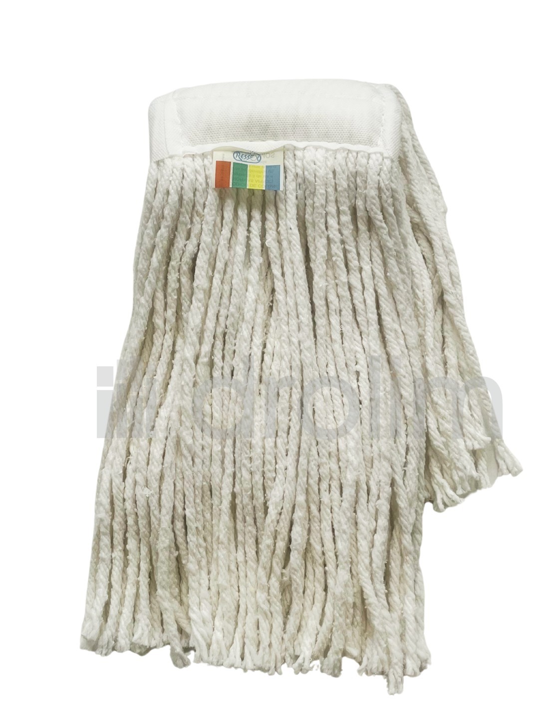Fregona industrial de 450 g en algodón blanco, altamente absorbente y resistente.