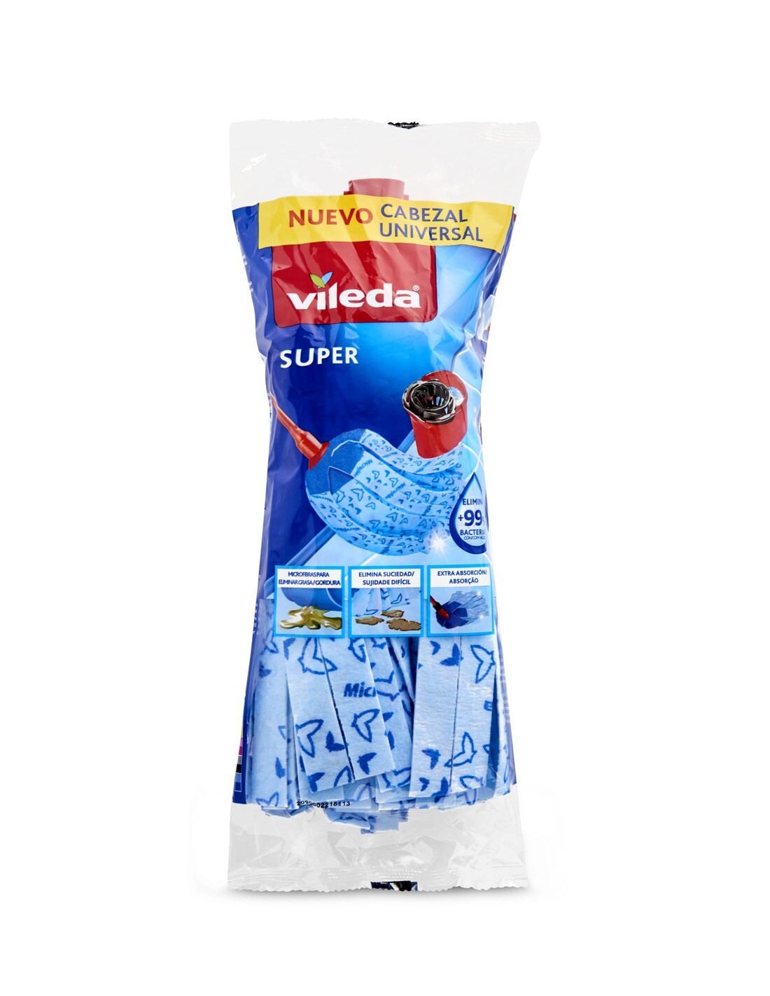 Fregona Vileda Super Microfibra Azul con alto poder de limpieza, absorción superior y uso eficaz en todo tipo de suelos. Ideal para limpieza diaria.