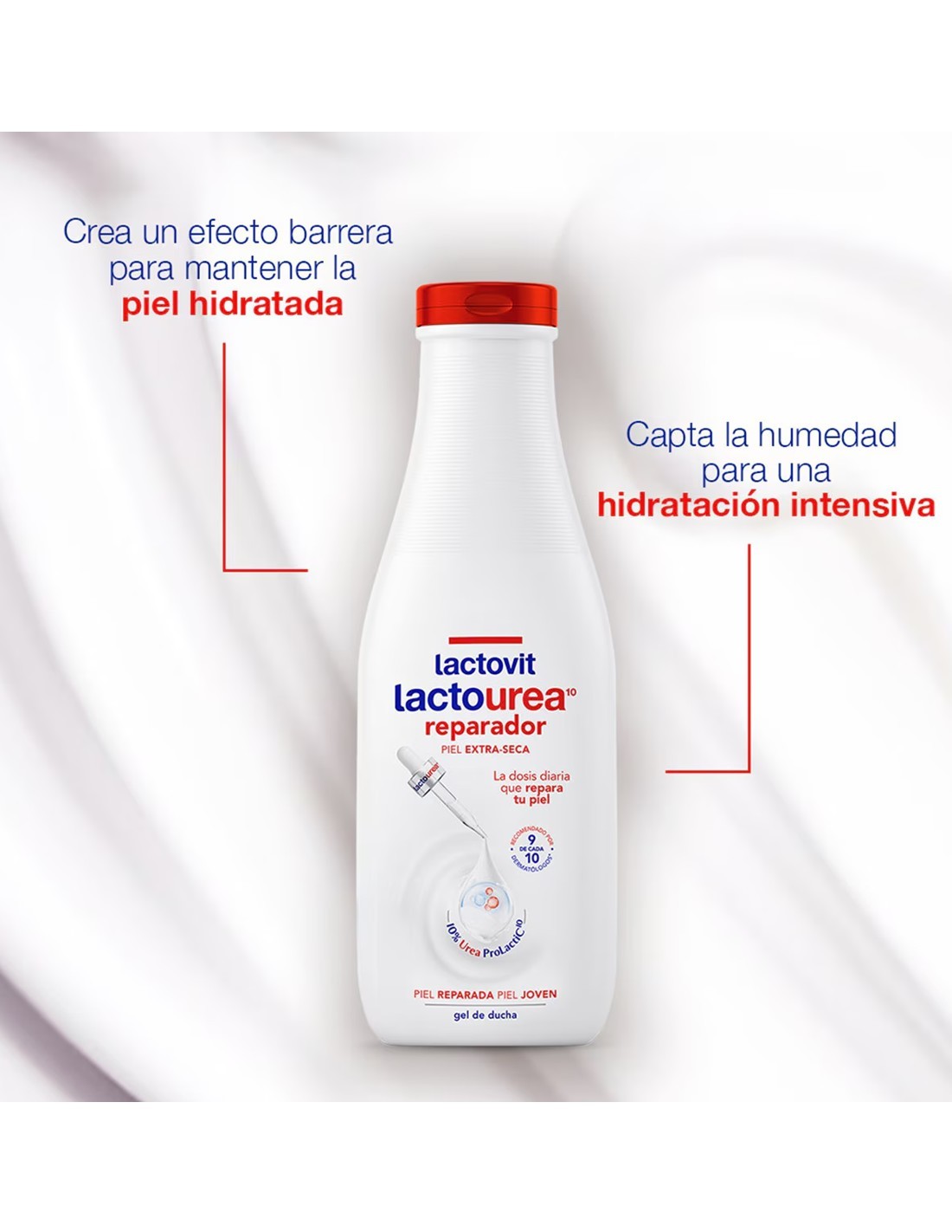 Gracias a su 10% de Lactourea [inferred from product name], este gel ayuda a restaurar la barrera protectora de la piel, proporcionando una hidratación profunda y reduciendo la sequedad y la sensación de tirantez desde la primera ducha. Disfruta de una piel visiblemente más suave, elástica y saludable. Su textura cremosa y su delicada fragancia hacen del baño un momento de placer y bienestar, dejando tu piel confortablemente nutrida y lista para afrontar el día.