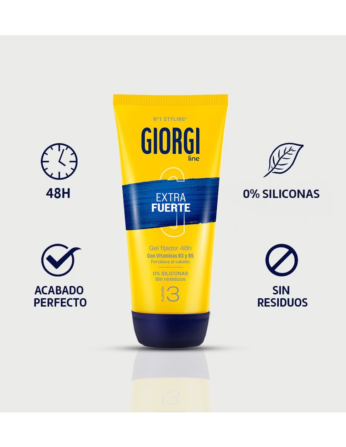 Consigue un peinado inamovible y con control total gracias al Giorgi Gel Fijador Extra Fuerte 48h Fijación 3 170 ml. Este gel de fijación de nivel 3 (Extra Fuerte) está diseñado para ofrecer una duración excepcional, manteniendo tu look perfecto hasta por 48 horas. Su fórmula avanzada proporciona una fijación potente que resiste la humedad y el movimiento, sin dejar residuos visibles ni apelmazar el cabello.
