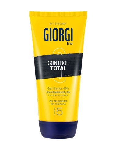 Giorgi Gel Fijador Control Total ofrece fijación máxima sin residuos. Define y mantiene tu estilo durante todo el día. Formato práctico de 170 ml.