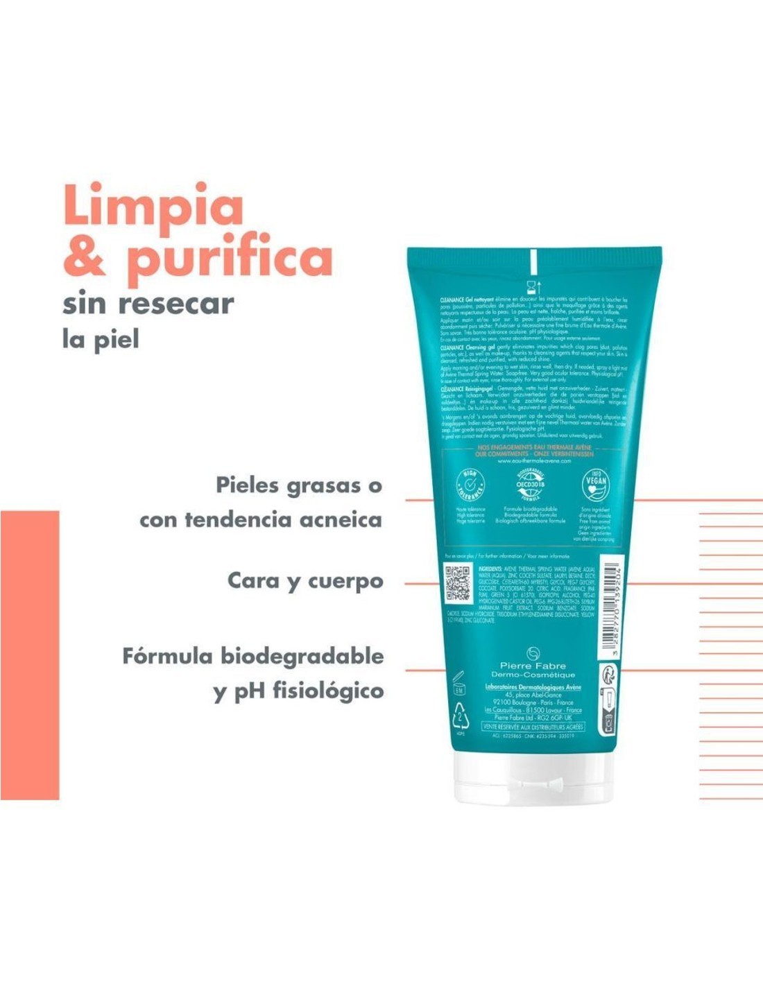 Avène Cleanance Gel Limpiador Purificante 200?ml está formulado para la higiene diaria de las pieles grasas, mixtas o con tendencia acneica. Elimina impurezas, exceso de sebo y restos de maquillaje sin agredir la barrera cutánea.
