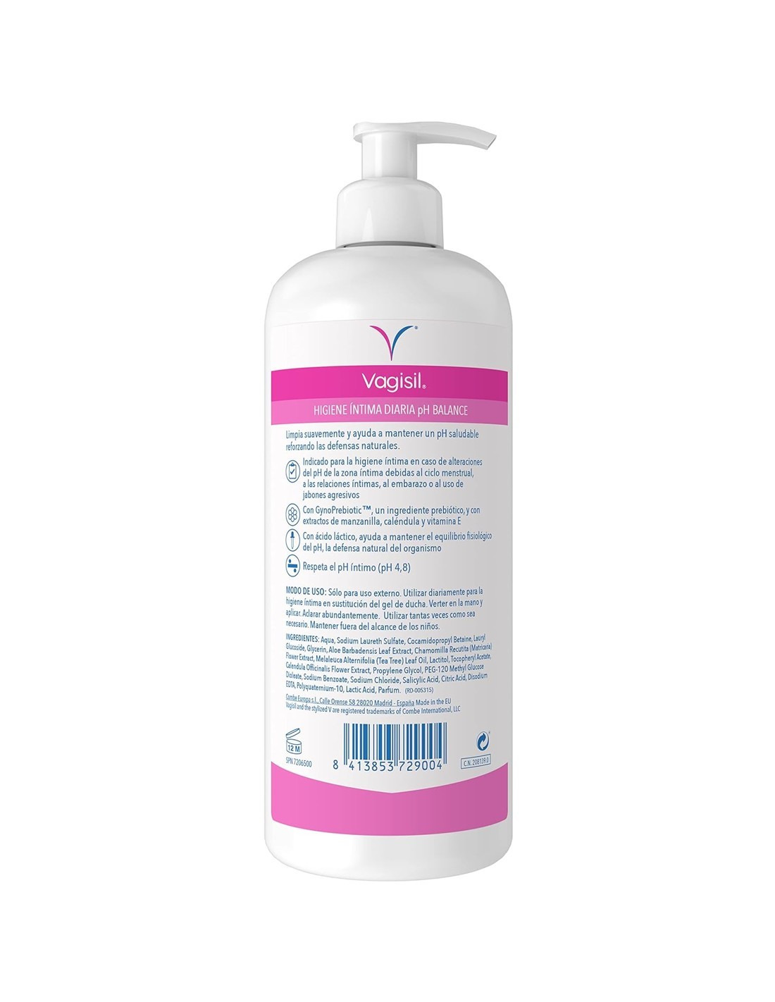 Vagisil Gel Íntimo incluye Gynoprebiotic, un componente que ayuda a mantener el equilibrio del pH íntimo y fortalecer las defensas de la zona. Además, contiene extracto de manzanilla, conocida por sus propiedades calmantes, caléndula, que ayuda a prevenir infecciones, y vitamina E, para proteger la piel delicada y mantener la hidratación. Es un producto hipoalergénico, dermatológicamente probado y libre de jabones y colorantes agresivos, asegurando un cuidado respetuoso y efectivo. Su formato con dosificador facilita la aplicación.