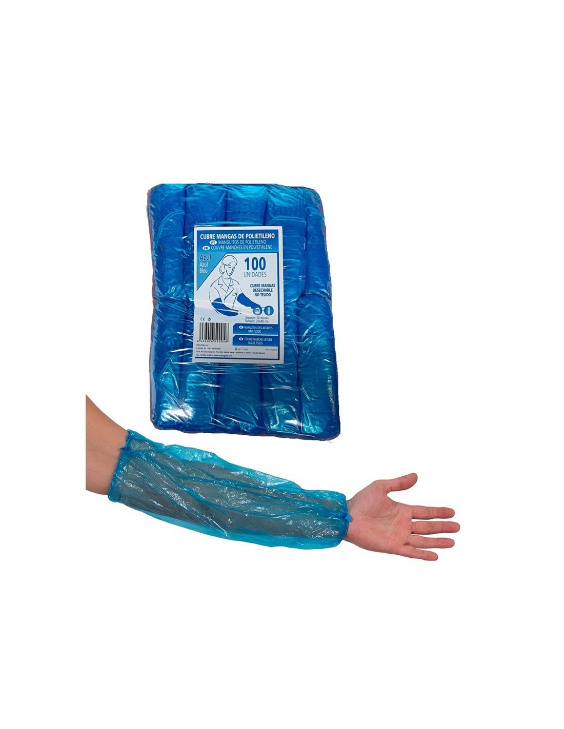 Manguitos de Protección Azul 100 Uds (Cubre Mangas) de Polietileno. Impermeables y resistentes, ideales para proteger brazos y ropa en tareas de higiene y limpieza.