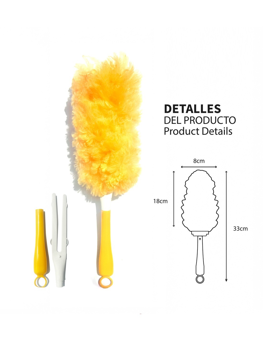 Modo de empleo: Deslice suavemente el plumero sobre las superficies secas a limpiar (muebles, electrónicos, persianas, etc.). La microfibra atrapará el polvo de forma electrostática.