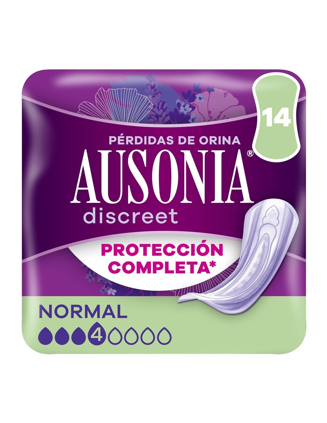 Ausonia Discreet compresa de incontinencia absorción normal. Longitud: 270 mm. Grosor: 3,2 mm.