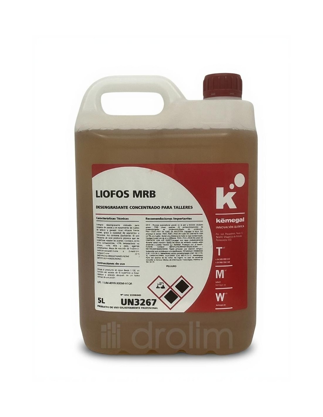Liofos MRB Extra Desengrasante Concentrado 5 Litros está formulado para eliminar eficazmente grasas, aceites y residuos adheridos en entornos industriales exigentes como talleres mecánicos, naves o áreas de mantenimiento. Su alta concentración permite una acción potente incluso sobre suciedad persistente, facilitando la limpieza profunda de suelos, herramientas y maquinaria.