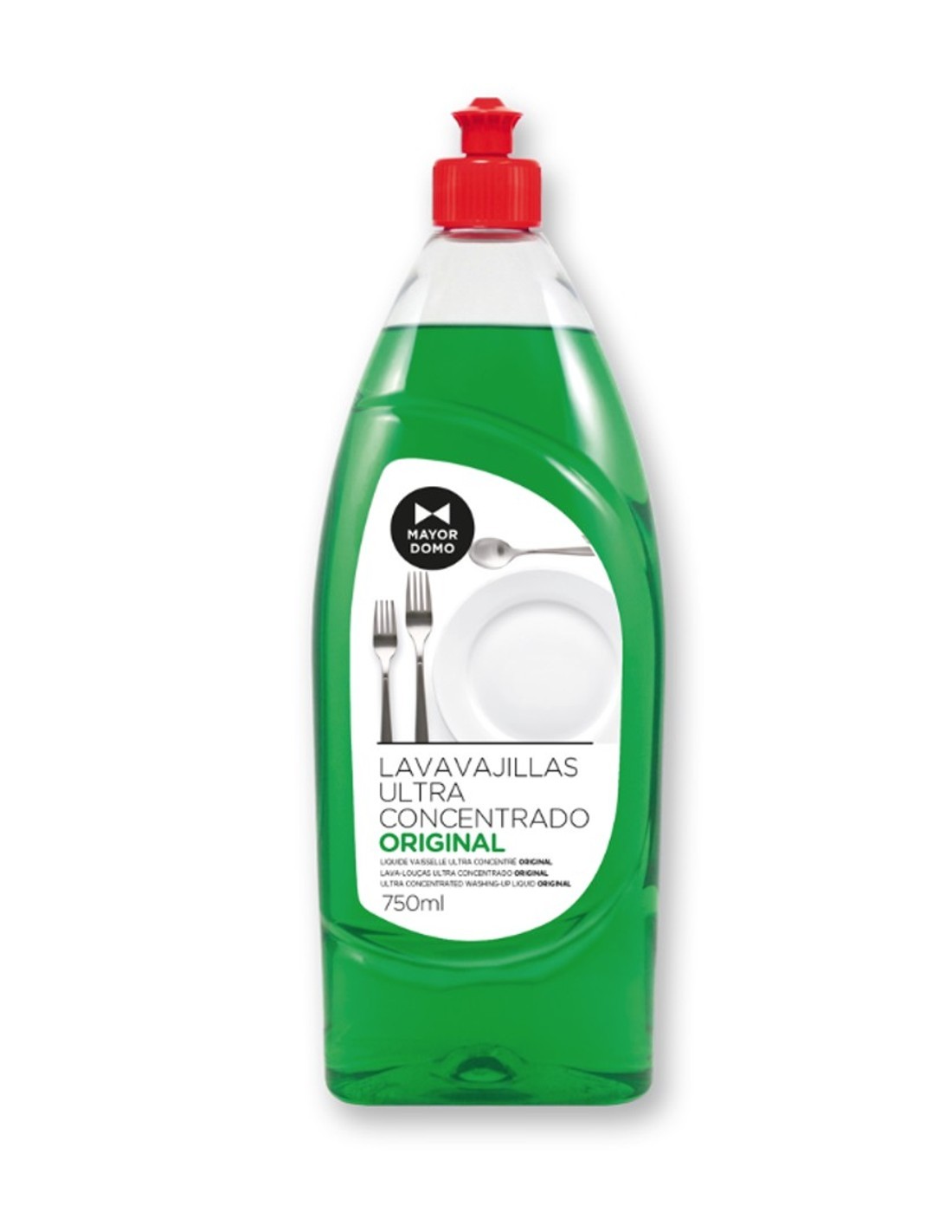 Lavavajillas Ultra Concentrado 750 ml de MAYORDOMO especialmente formulado para eliminar la grasa y la suciedad de raíz.