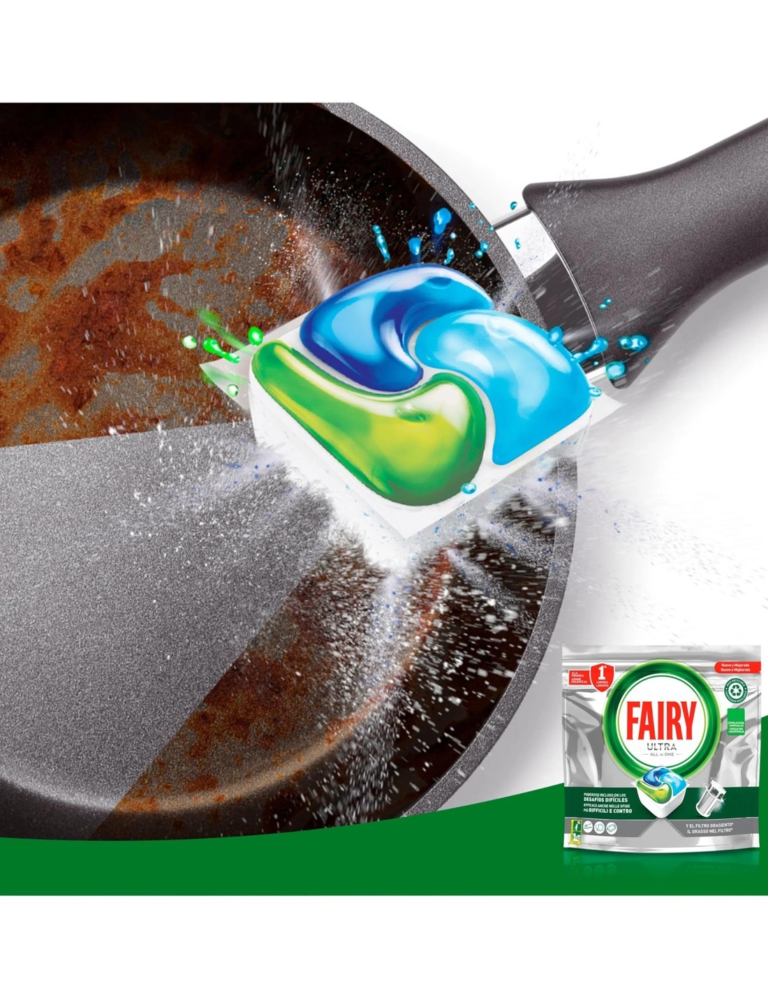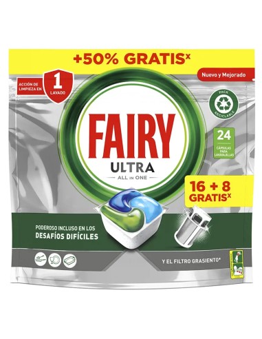 Fairy Cápsulas Lavavajillas Original Todo en 1 24 (16+8) uds combina una limpieza potente con acción abrillantadora en un solo gesto. Su fórmula concentrada actúa contra la grasa más incrustada, incluso en ciclos cortos, dejando la vajilla limpia y reluciente sin necesidad de prelavado.