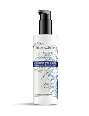 El Gel Limpiador Facial Antimanchas de Bella Aurora combina la eficacia de un gel con la textura suave de una crema, proporcionando una limpieza profunda que elimina impurezas y restos de maquillaje. Enriquecido con extracto de granada, exfolia suavemente, aportando luminosidad y unificando el tono de la piel. Además, contiene agua de arroz ecológico, conocido por sus propiedades anti-edad, que mejora la flexibilidad y elasticidad cutánea. Este limpiador también protege la piel de la contaminación urbana y previene el envejecimiento prematuro. Su fórmula está compuesta por un 78% de ingredientes de origen natural y posee un perfume fresco y floral con ligeros toques afrutados.