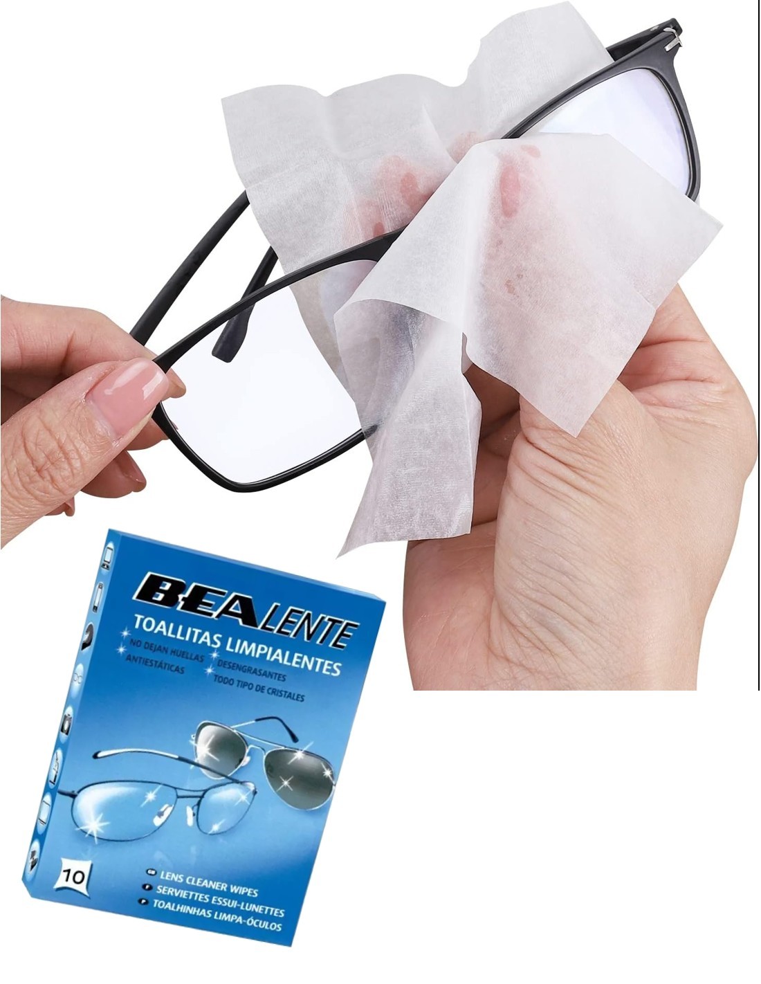 Toallitas Bea para gafas y lentes, 10 uds, limpieza sin residuos.