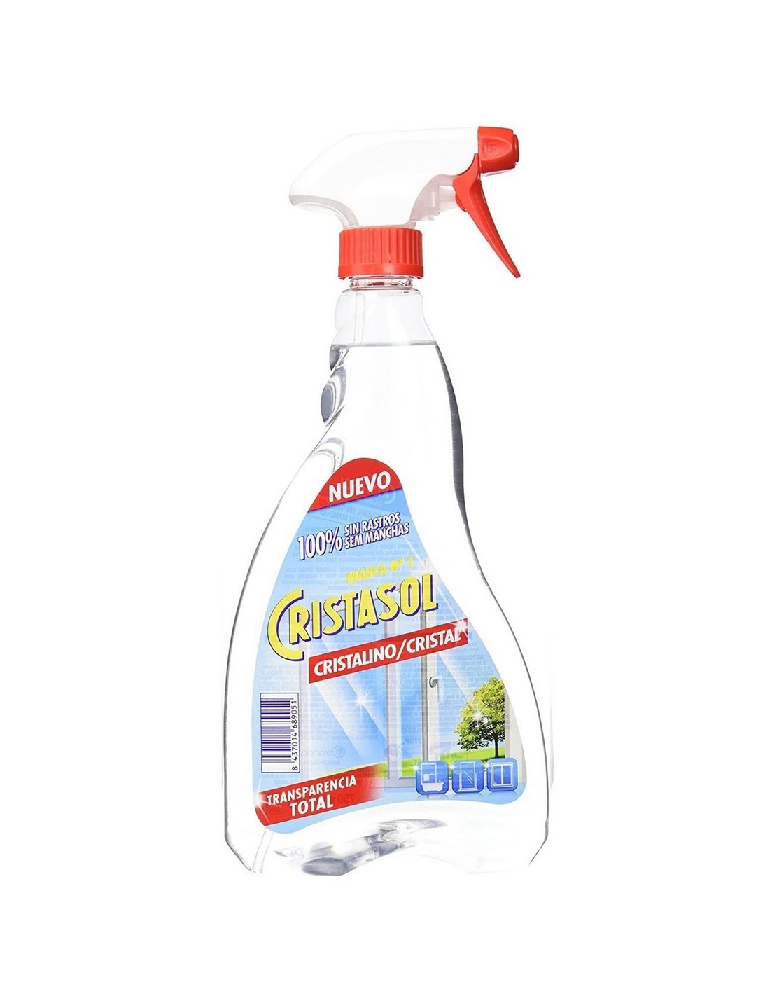 Cristasol Cristalino limpia cristales en formato pistola de 750 ml. Eficaz en la eliminación de huellas, polvo y suciedad en ventanas y superficies de cristal.