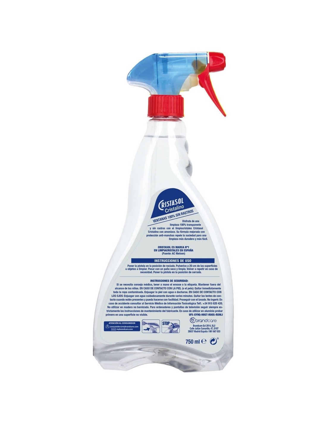 Cristasol Cristalino Limpiacristales Pistola 750 ml es la solución perfecta para una limpieza rápida y sin esfuerzo de cristales, ventanas, espejos y superficies acristaladas. Su fórmula elimina eficazmente grasa, polvo y marcas de dedos, dejando un brillo impecable y sin rastros.