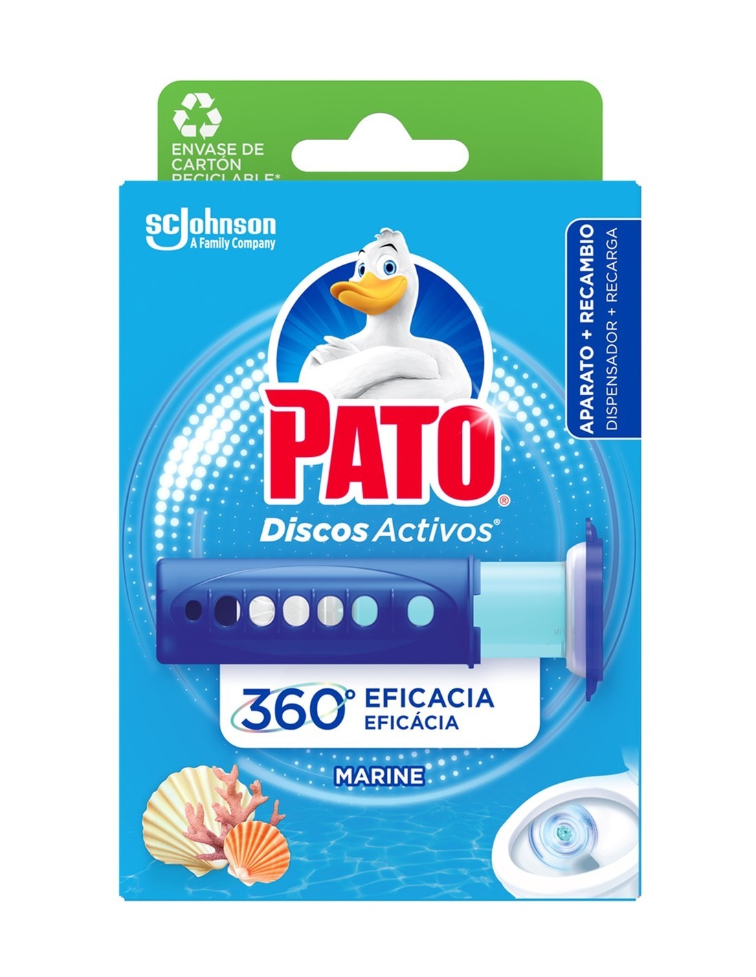Mantén tu inodoro impecable con los discos activos Pato Marine.