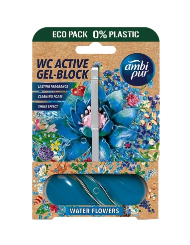 El bloque de inodoro tri-gel Ambipur Water & Flowers utiliza la innovadora tecnología tri-gel que garantiza que el maravilloso aroma de Water & Flowers permanezca por más tiempo y que el inodoro permanezca limpio por más tiempo.