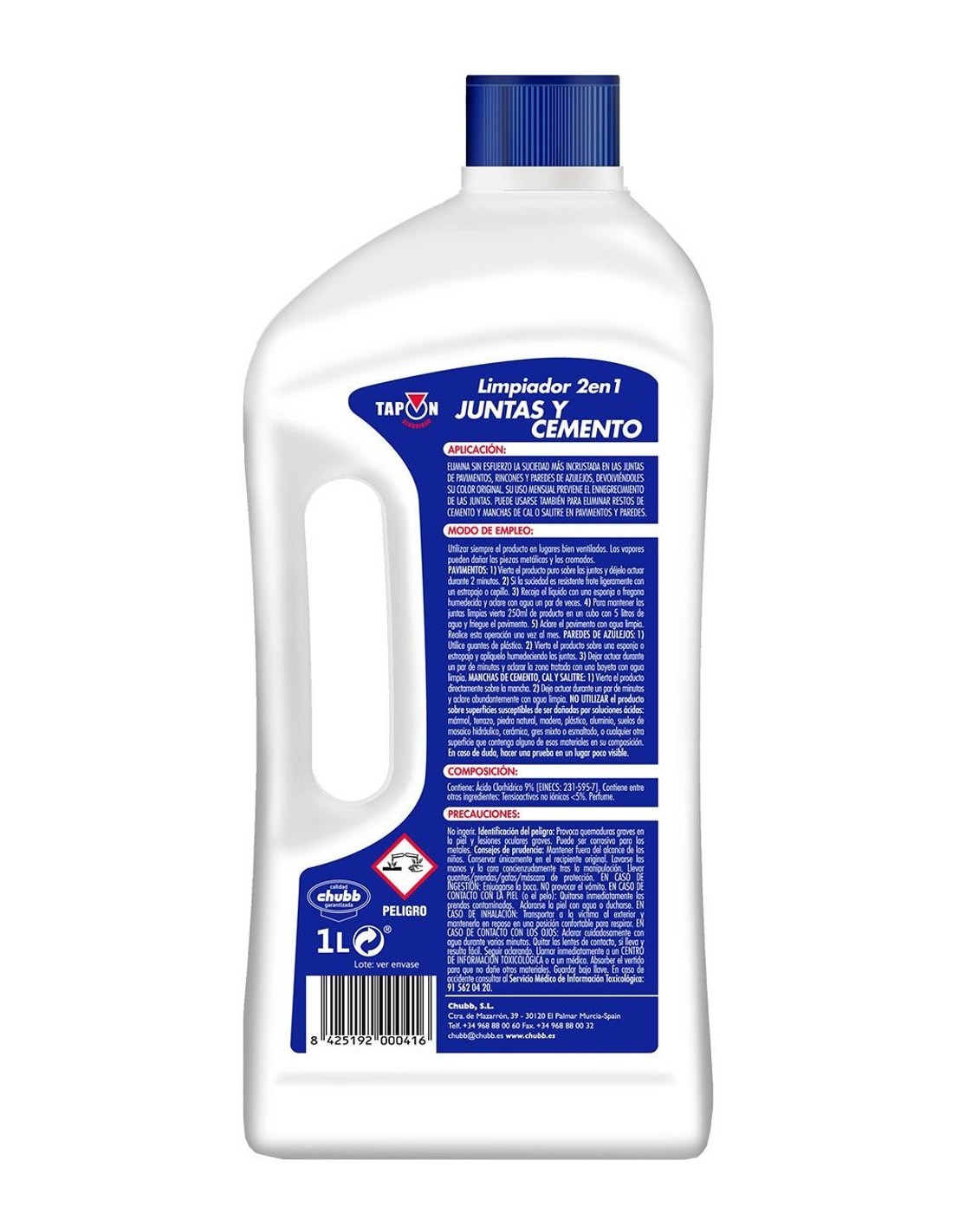 CHUBB Limpiador 2en1 Juntas y Cemento de 1 litro es la solución ideal para restaurar el aspecto de tus superficies. Su fórmula concentrada ofrece una eficacia profesional al eliminar la suciedad más incrustada y los restos de cemento de las juntas de pavimentos, rincones y paredes de azulejos.