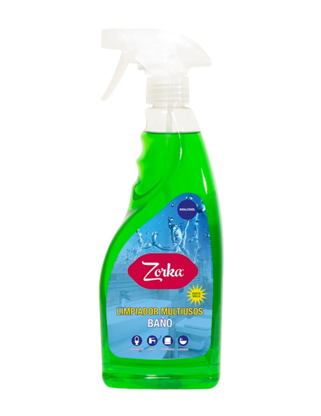 El limpiador multiusos para baños Zorka es la solución ideal para una limpieza completa. Su fórmula ligeramente ácida ha sido especialmente desarrollada para desincrustar la suciedad y los restos de cal más difíciles. Además de su poder de limpieza, este producto incorpora una alta concentración de perfume para dejar un agradable efecto ambientador en el baño. Consigue un acabado perfecto en todas las superficies lavables, como WC, sanitarios, mamparas, bañeras y griferías, gracias a su fórmula con efecto brillo.