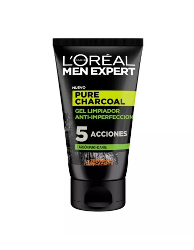 Gel limpiador L'Oréal Men Expert Pure Carbon 100 ml, elimina impurezas y grasa para una piel limpia y fresca.