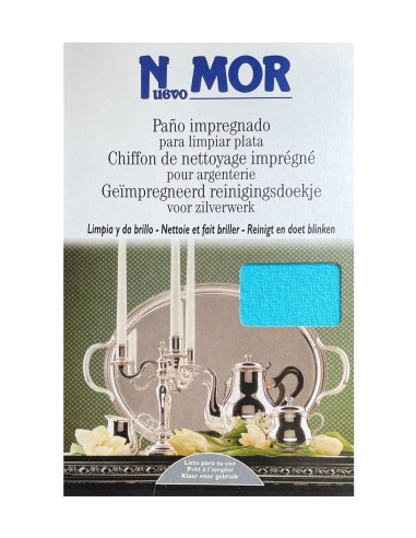 DYLON NMOR Paño Impregnado para Limpiar Plata es la solución profesional más rápida y cómoda para el mantenimiento de todos sus objetos de plata, desde la joyería fina hasta la cubertería y los artículos decorativos. Este paño, fabricado con algodón 100% de alta calidad, está pre-impregnado con una fórmula limpiadora especial que no solo elimina la suciedad y la oxidación (el ennegrecimiento), sino que también deja una capa protectora anti-deslustre para un brillo duradero.