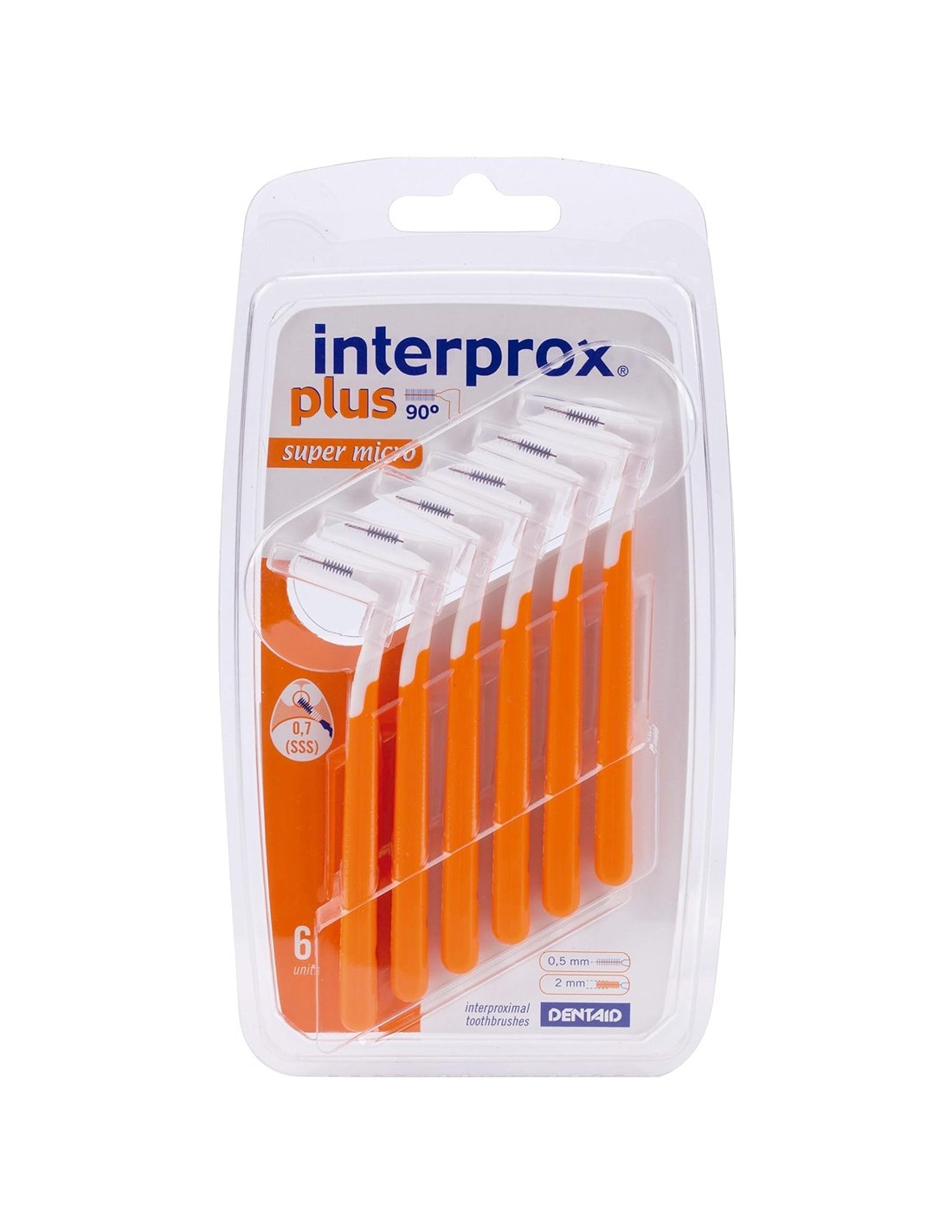 Optimiza tu higiene bucal diaria con INTERPROX CEPILLO INTERDENTAL PLUS SUPER MICRO 6 UDS. Este cepillo está diseñado para limpiar eficazmente los espacios interdentales de 0.7 mm, eliminando el biofilm oral (placa bacteriana) acumulado en zonas de difícil acceso como premolares y molares. Su cabezal en ángulo permite una inserción perpendicular y facilita el acceso a los espacios posteriores, garantizando una limpieza profunda y sin dañar las encías.