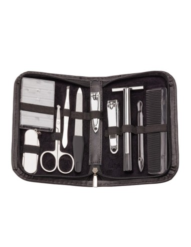 Este elegante estuche de manicura para caballero incluye todas las herramientas necesarias para el cuidado de uñas y vello facial. Contiene cortaúñas, tijeras, lima, pinzas, peine y otros accesorios de precisión. Su diseño compacto y su estuche con cierre seguro lo hacen ideal para uso diario o para llevar de viaje. Mantén una imagen impecable con este práctico set de manicura.