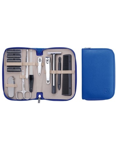 ESTUCHE DE MANICURA CABALLERO AZUL CON MAQUINA DE AFEITAR