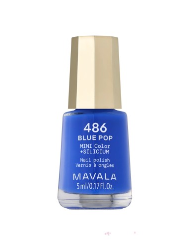 Esmalte Mavala Minicolor 486 Blue Pop. Azul intenso con brillo, secado rápido y larga duración. Acabado uniforme en frasco de 5 ml.
