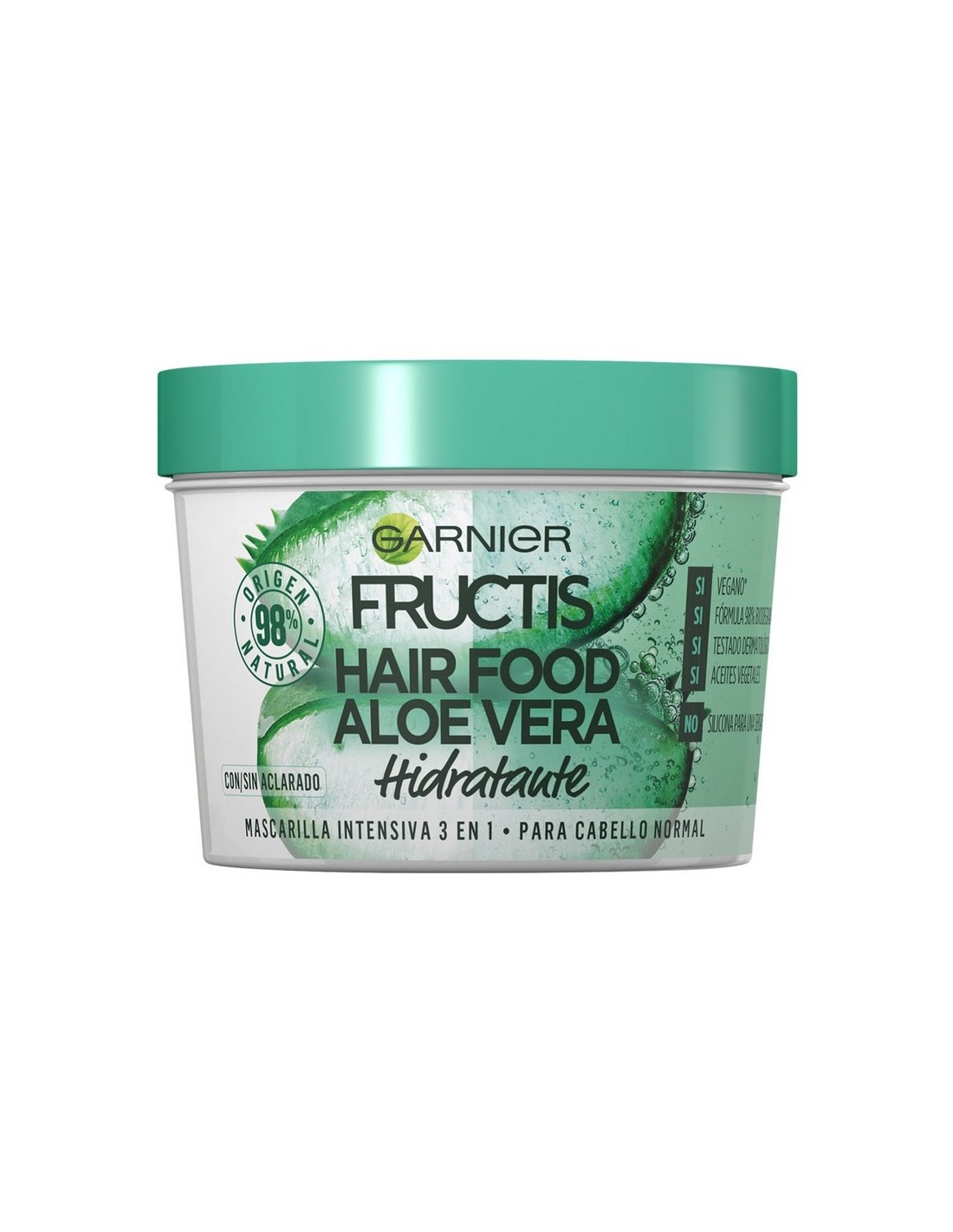 Nutre en profundidad el cabello normal a seco con la mascarilla Fructis Hair Food Aloe Vera. Este tratamiento capilar 3 en 1 es la solución perfecta para conseguir un pelo visiblemente más sano, suave y lleno de vida. Su composición, con un 98% de ingredientes de origen natural y sin siliconas, aporta una hidratación intensa sin apelmazar.
