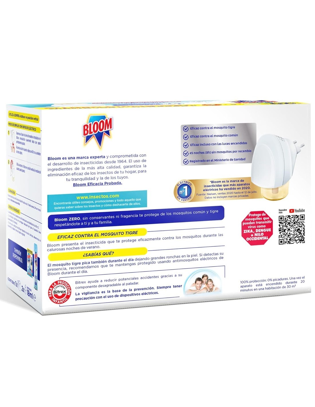 Bloom Eléctrico Aparato Zero Mosquitos + 2 Recambios (90 Noches) está diseñado para ofrecerte protección duradera contra los mosquitos durante 90 noches. Este práctico kit incluye un aparato eléctrico y dos recambios líquidos que brindan eficacia prolongada sin dejar olores molestos, asegurando un ambiente fresco y libre de insectos. Ideal para quienes buscan una protección continua en el hogar sin interrupciones, este producto garantiza noches de descanso tranquilas y sin picaduras. Compatible con otros dispositivos Bloom, es una solución confiable para mantener tu hogar libre de mosquitos.