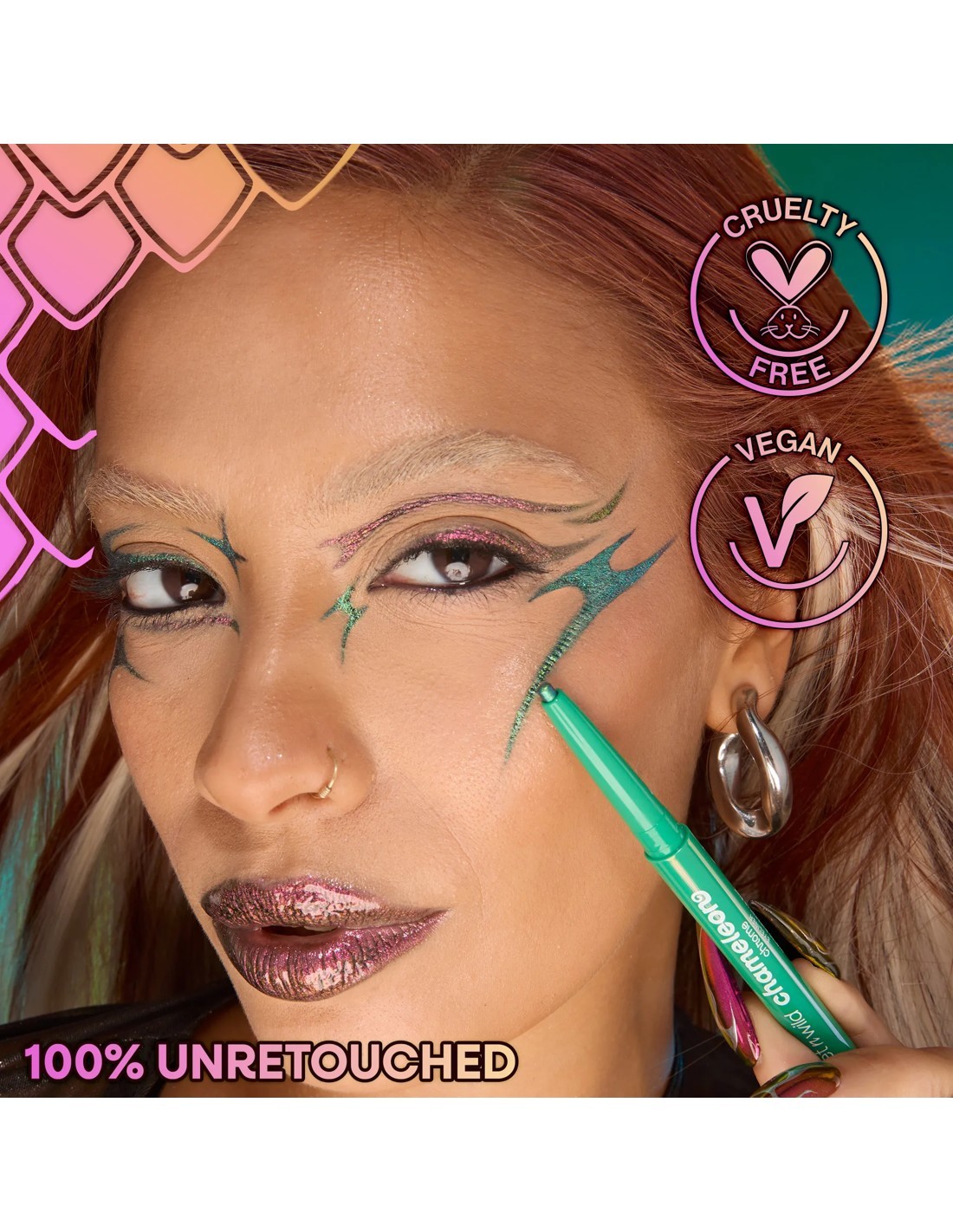 Haz que tu mirada brille con el delineador de ojos cromado Wet n Wild Camaleón en el tono Superstar Suit. Su fórmula líquida y ligera se desliza con suavidad y se seca rápidamente, dejando un acabado metálico con efecto camaleón que cambia de tono según la luz.