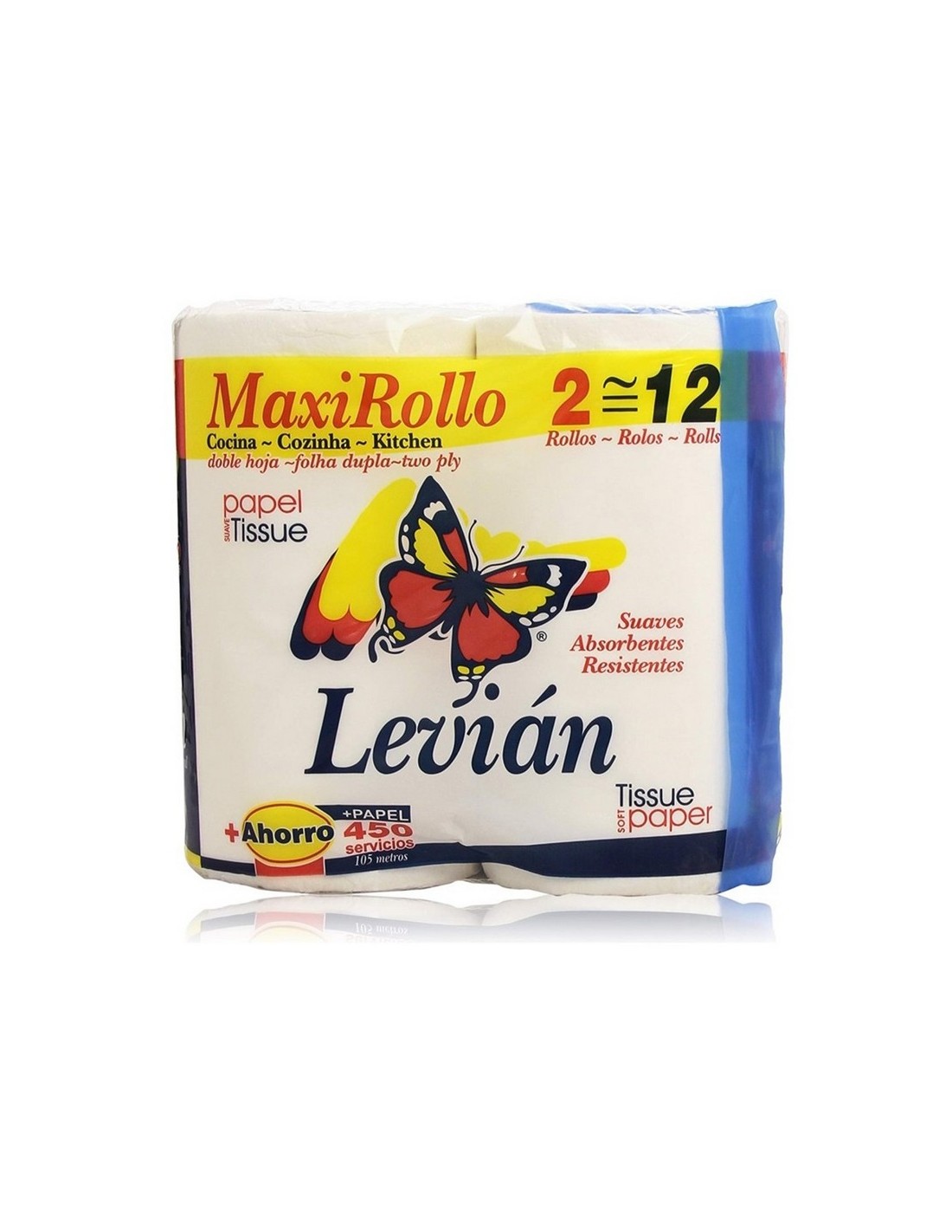 Papel de cocina Levian, pack de 2 maxi rollos con gran absorción y resistencia.