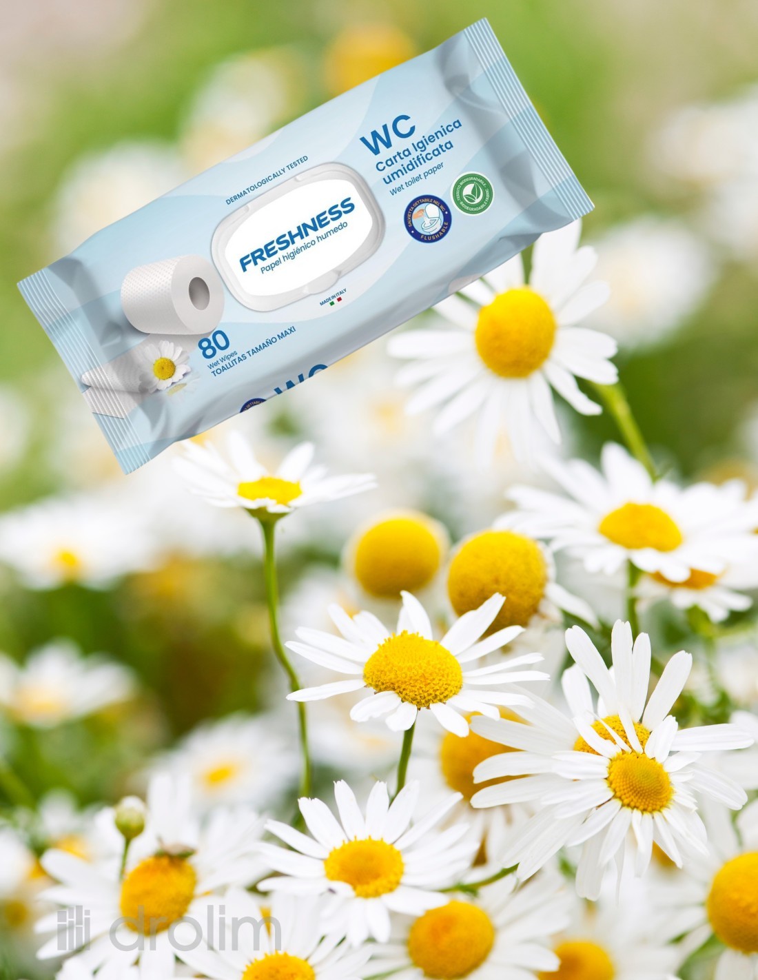 El Papel Higiénico Húmedo Freshness con 80 toallitas es la opción ideal para una higiene completa y refrescante. Cada toallita es suave, está perfumada y es biodegradable, proporcionando una limpieza más profunda que el papel higiénico tradicional. Su fórmula, testada dermatológicamente, es segura para las pieles sensibles y no contiene alcohol. El práctico envase con tapa click garantiza que las toallitas se mantengan siempre frescas y húmedas. Es un producto versátil, apto también para la limpieza de manos y rostro.
