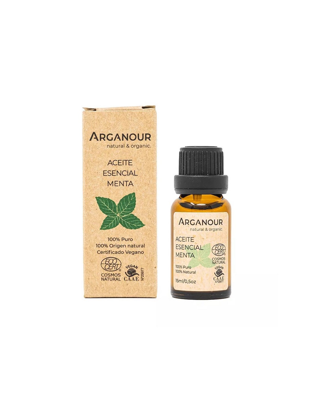 El aceite esencial de menta es conocido por sus propiedades refrescantes y estimulantes. Alivia dolores de cabeza, mejora la concentración y ayuda a despejar las vías respiratorias.