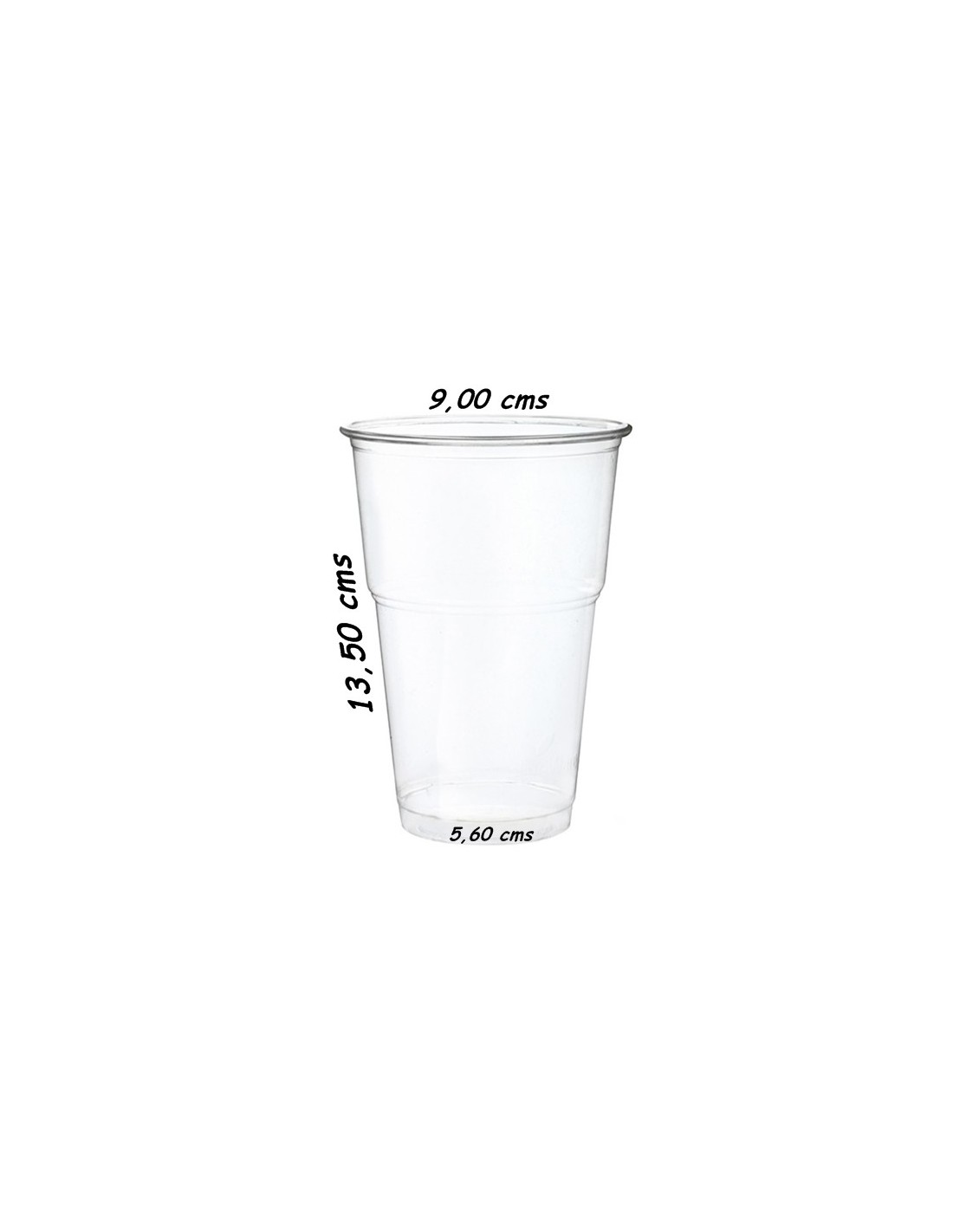 Vaso de polipropileno transparente de 500 ml de capacidad. Paquete de 50 unidades. 100% reciclable.