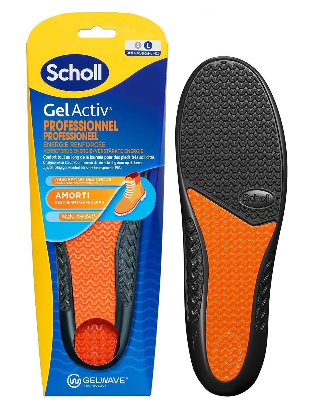 Plantilla Scholl Gel Activ Profesional Hombre. Confort y amortiguación superior. Absorben el sudor y eliminan el olor. Talla 40-46.5.