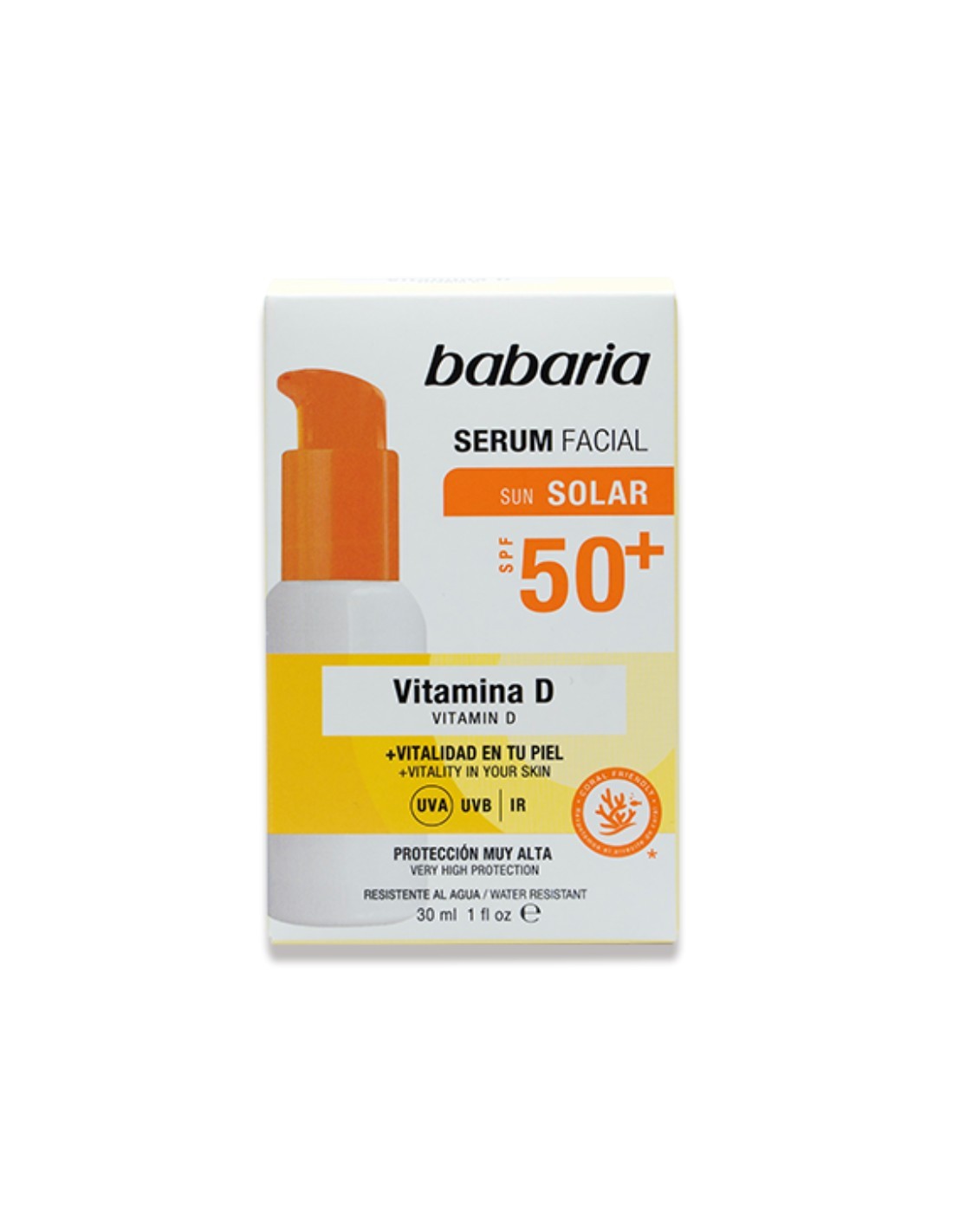 Babaria Sérum Solar Facial SPF50+ 30ml con Vitamina D, protección e hidratación.