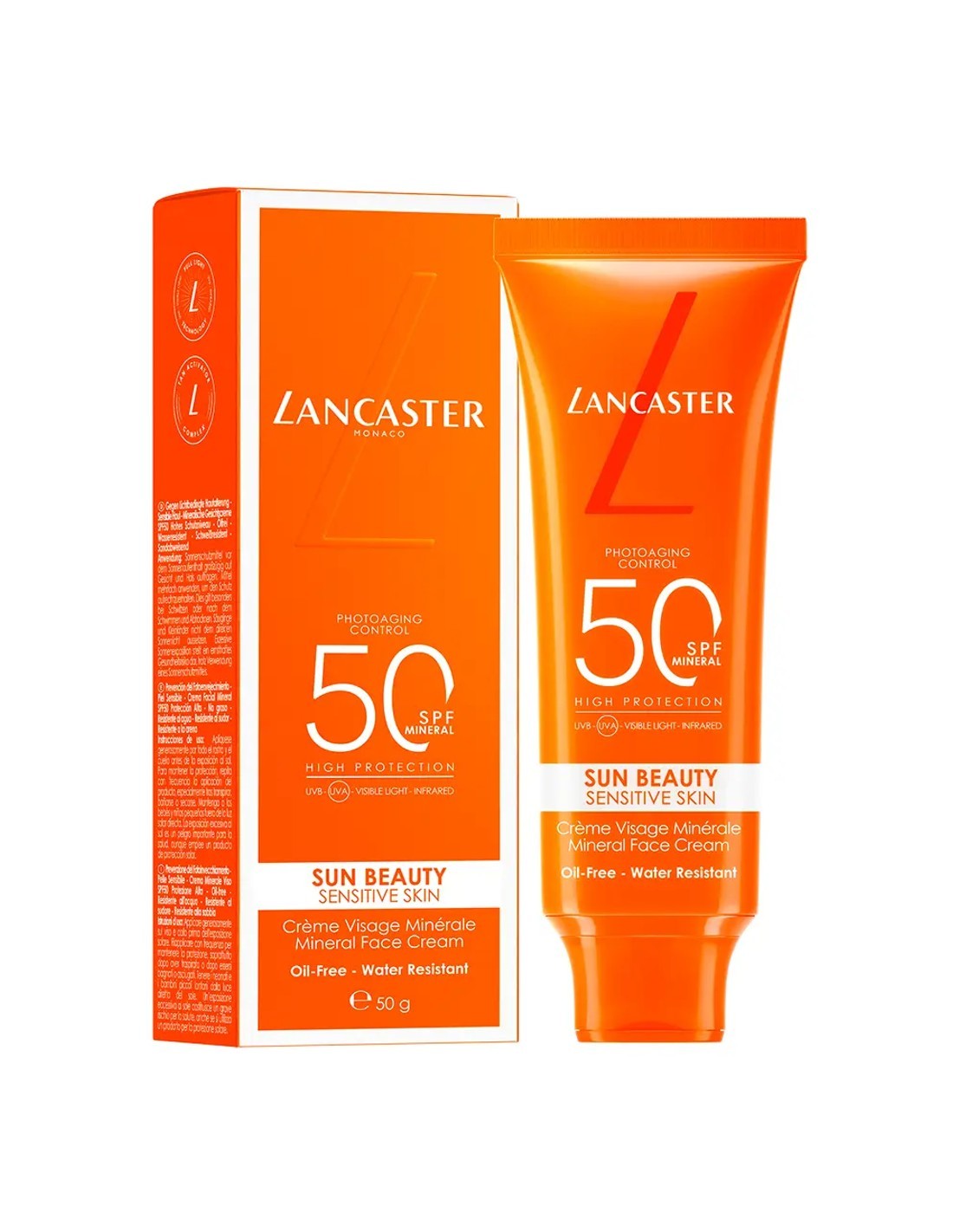 Lancaster Sun Beauty Crema Solar Mineral Facial SPF50 es la solución perfecta para proteger tu rostro del sol. Esta crema ofrece una protección muy alta, con un enfoque en filtros 100% minerales, lo que la hace ideal para pieles sensibles o que prefieren este tipo de formulaciones.