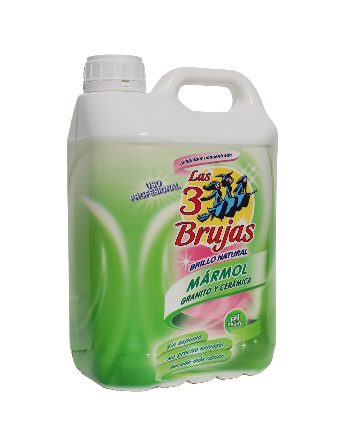 Limpiador concentrado Las 3 Brujas 5L para mármol, granito y cerámica. Limpieza profunda, aroma fresco y brillo duradero. Ideal para uso profesional.