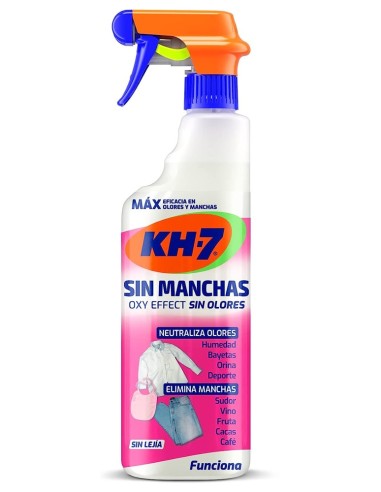 KH-7 Ropa Sin Manchas Coloreadas Oxy Pistola 715 ml es un quitamanchas prelavado con oxígeno activo, diseñado para eliminar manchas orgánicas como vino, fruta, verdura, café o salsas sin dañar los tejidos. Su fórmula no contiene lejía, lo que lo hace seguro para ropa blanca y de color, incluso negra.