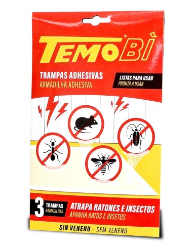 TEMOBI TRAMPA ADHESIVA RATONES E INSECTOS 3 UNIDADES (21X13,5 CM)