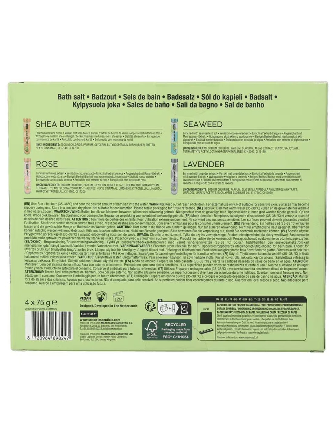 SENCE SET SALES DE BAÑO 4 PZAS X 75 GRS