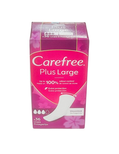 CAREFREE Salva Slip Plus Large, protección diaria con mayor cobertura y comodidad. Pack de 36 unidades.