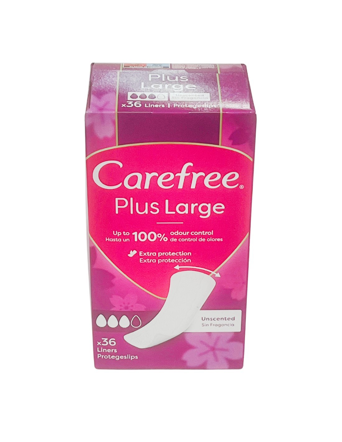 Los salva slips CAREFREE Plus Large ofrecen una protección diaria más amplia y cómoda. Diseñados con una superficie suave y transpirable, ayudan a mantener la sensación de frescura durante todo el día. Su formato Large proporciona mayor cobertura y seguridad, adaptándose perfectamente a la ropa interior. Además, su núcleo absorbente ayuda a mantener la piel seca y protegida.