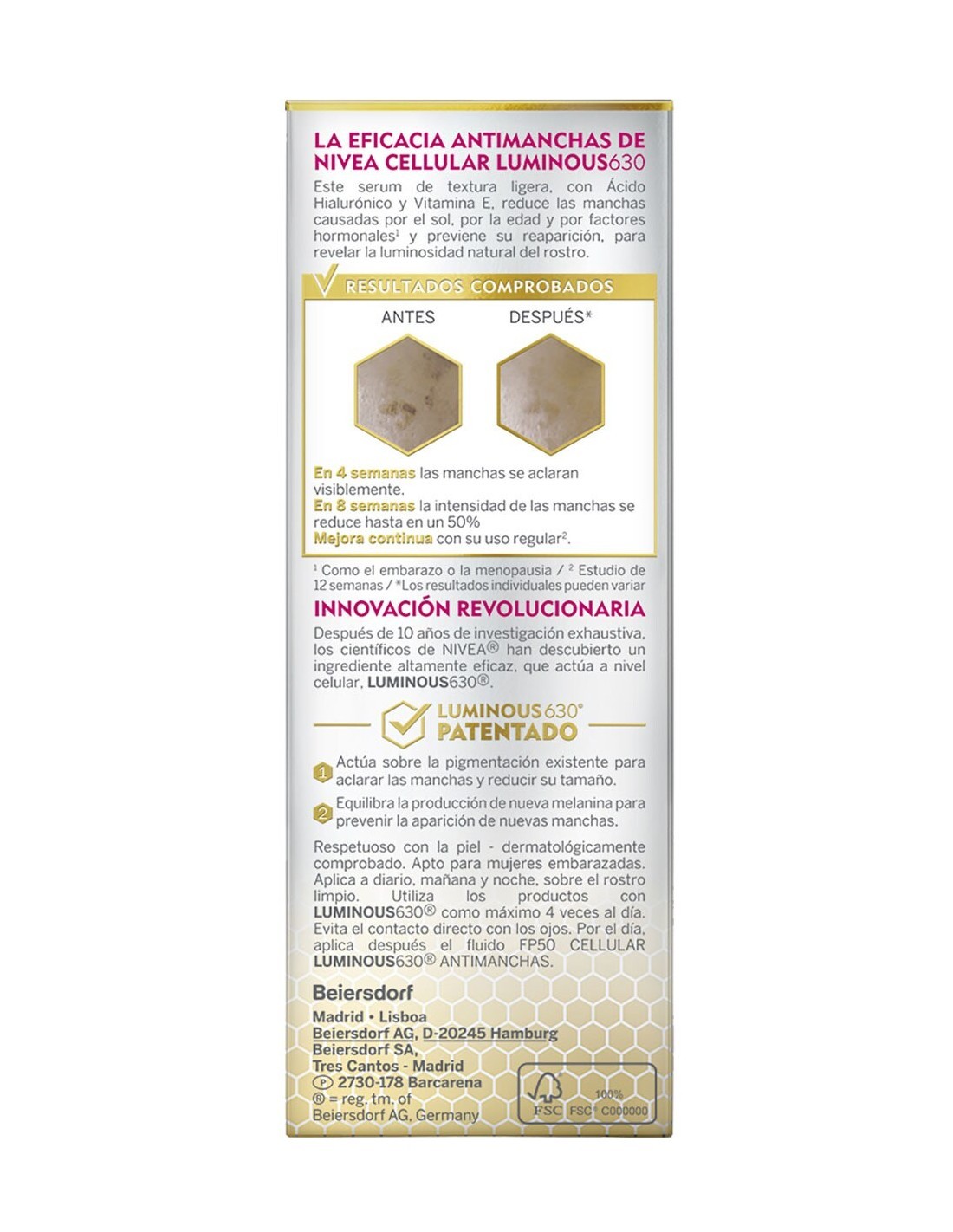 Nivea Crema Facial Luminous Serum Anti Manchas 30 ml es un sérum facial avanzado que combate las manchas oscuras, brindando una piel más luminoso y unificada. Formulada con ingredientes activos que ayudan a reducir la apariencia de manchas, este sérum tiene una textura ligera que se absorbe rápidamente en la piel.