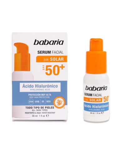 Babaria Sérum Solar Facial SPF50+ 30ml, hidratación y alta protección.