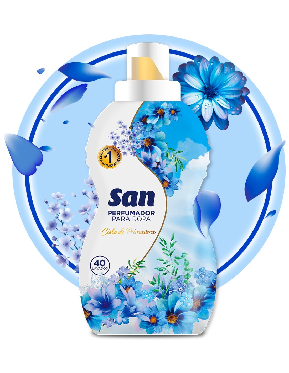 El perfumador para ropa SAN Cielo de Primavera envuelve tus prendas con una fragancia floral fresca y agradable que perdura lavado tras lavado. Su fórmula concentrada garantiza un aroma duradero, aportando sensación de limpieza y bienestar cada vez que abres el armario.